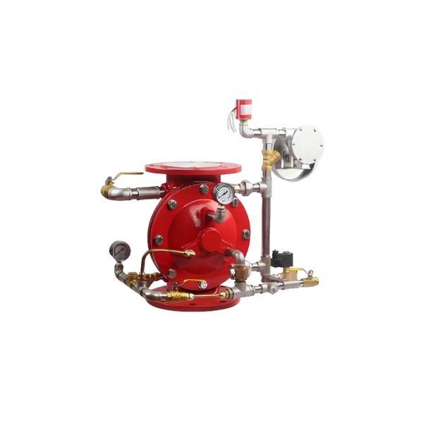 Fast-acting deluge valve with flange ends for high-risk fire suppression systems.